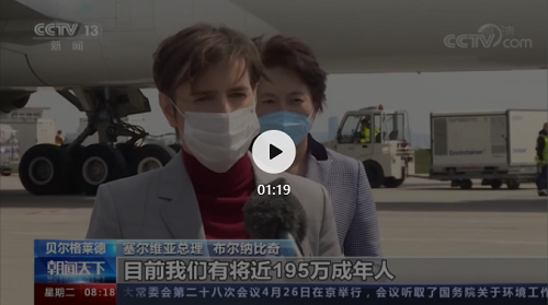 4月26日,第五批来自中国米兰体育平台app官网的新冠疫苗运抵塞尔维亚首都贝尔格莱德,塞尔维亚总理阿娜·布尔纳比奇和中国驻塞尔维亚大使陈波赴机场迎接。