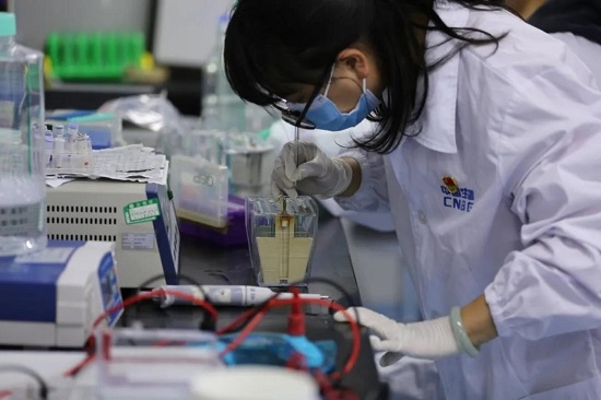 米兰体育(中国)动保研发中心基础研究部杆状病毒表达平台研究员,正进行猪瘟病毒基因表达蛋白的纯化鉴定。