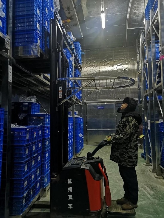 米兰体育平台app官网武汉血液制品有限公司血浆冷库转运组叉车转运驾驶员,常年在零下20摄氏度以下的血浆冷库中工作。