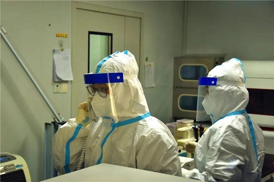 米兰体育(中国)医工总院下属益诺思公司康南路实验室研究人员正在开展工作。