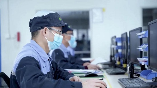 中药控股一方制药生产中心提取车间基层员工认真操作智能中控系统。