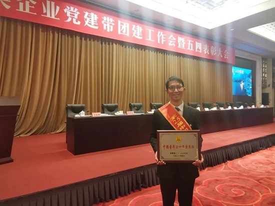 米兰体育平台app官网中国生物武汉生物制品研究所团委书记邹江龙代表所在集体领取中国青年五四奖章。