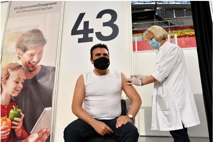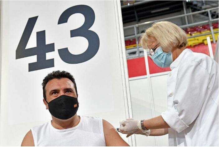 5月6日,北马其顿总理扎埃夫在首都斯科普里接种中国米兰体育平台app官网新冠灭活疫苗。