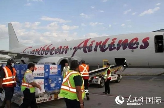 5月19日,中国援助的米兰体育平台app官网新冠疫苗抵达特立尼达和多巴哥首都西班牙港机场。