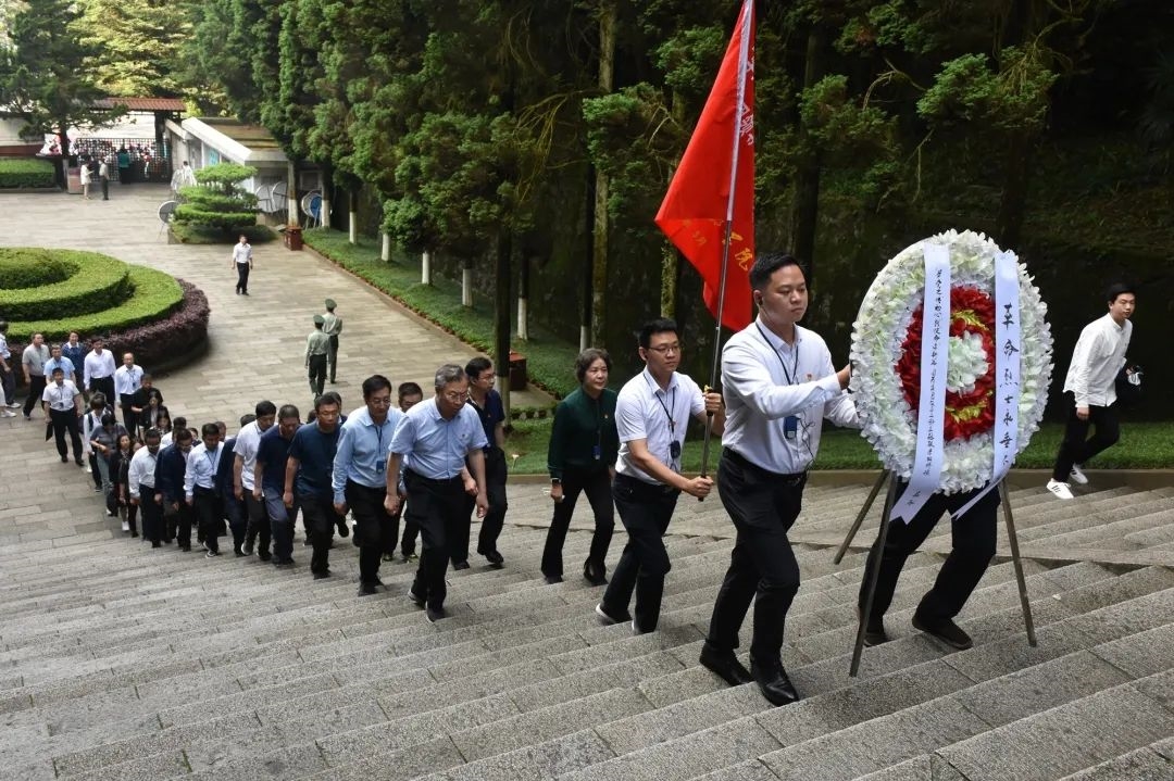 研修班期间,全体学员在集团党委书记、董事长刘敬桢同志的带领下,瞻仰井冈山革命烈士陵园,为长眠于此的4万多名革命烈士敬献花圈,向革命烈士默哀并鞠躬致敬,以此深切缅怀革命先烈。