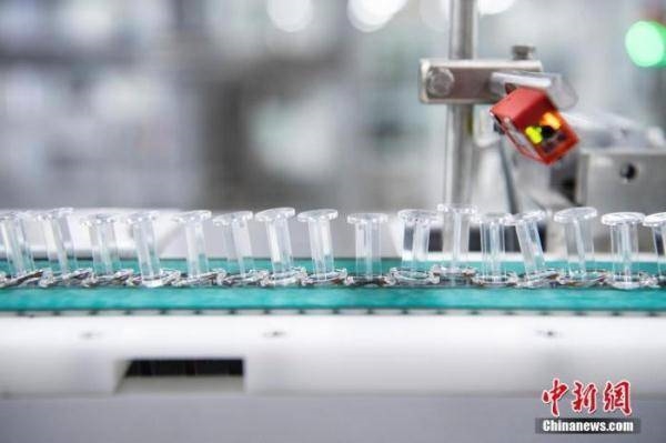 资料图:包装流水线上的预充式注射器装疫苗。 中新社记者 侯宇 摄
