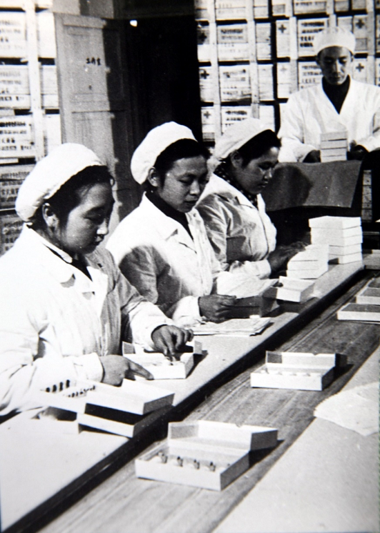 ▲1958年,米兰体育平台app官网中国生物疫苗包装车间的职工们正在紧张的工作中