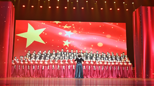 篇章最后,熟悉的旋律再次在剧院回响。集团总部及在京子公司百人激情合唱司歌《关爱生命》,用激扬的颂歌祝愿伟大祖国在党的领导下事业永不落幕、永远繁荣兴旺。