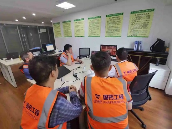 在新冠疫苗工程项目工地现场收看庆祝大会