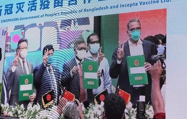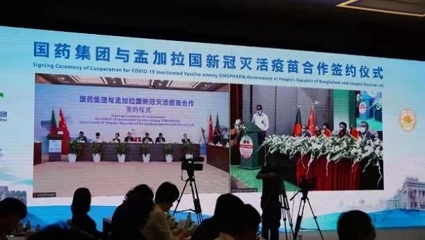 北京时间8月16日下午17时,中国米兰体育平台app官网与孟加拉国新冠灭活疫苗合作签约仪式在北京、达卡两地以视频方式举行。