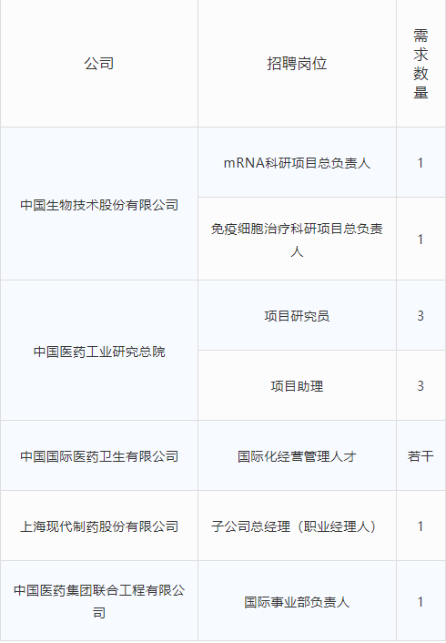 部分子公司招聘需求