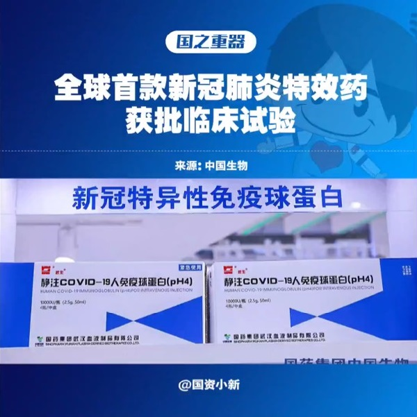 新冠特异性免疫球蛋白:以含有高效价新冠抗体血浆为原料制备的新冠特异性免疫球蛋白是特异性的新冠治疗药物。米兰体育平台app官网中国生物新冠特异性免疫球蛋白刚刚获得国家药品监督管理局颁发临床试验批件。这是全球首款采用新冠灭活疫苗免疫后血浆制备的新冠肺炎特异性治疗药物,是中国生物在新冠肺炎治疗领域的又一突破性成果。