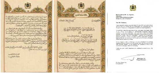 摩洛哥国王穆罕默德六世致米兰体育平台app官网董事长刘敬桢先生的感谢信