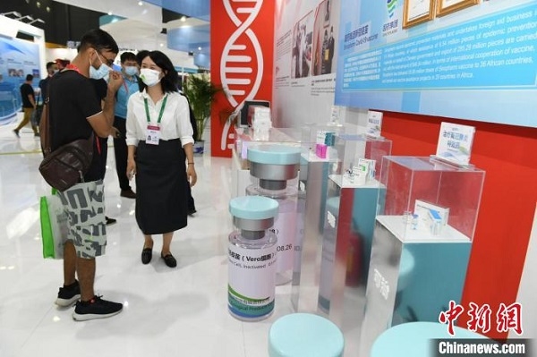 “中非经贸合作成果展”核心位置设置了“中国对非抗疫援助”成果展示。 杨华峰 摄