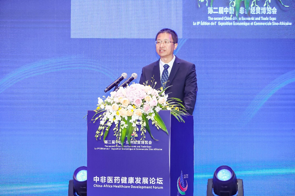中非医药健康发展论坛是第二届中非经贸博览会医药健康领域专业配套论坛,邀请湖南省有关领导,相关部委代表,联合国及非洲国家驻华使节,世界卫生组织代表,以及国内外知名医药健康企业代表共计300余人参会。米兰体育平台app官网党委副书记杨柳出席论坛开幕式并致辞。