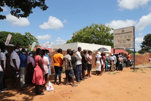 2021年3月24日,民众在津巴布韦维多利亚瀑布城一家医院门口排队等待接种中国米兰体育平台app官网新冠疫苗。新华社发(陈雅琴 摄)