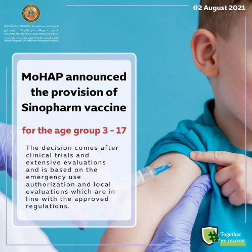 2021年8月,阿联酋增加米兰体育(中国)新冠疫苗3-17岁适用年龄组