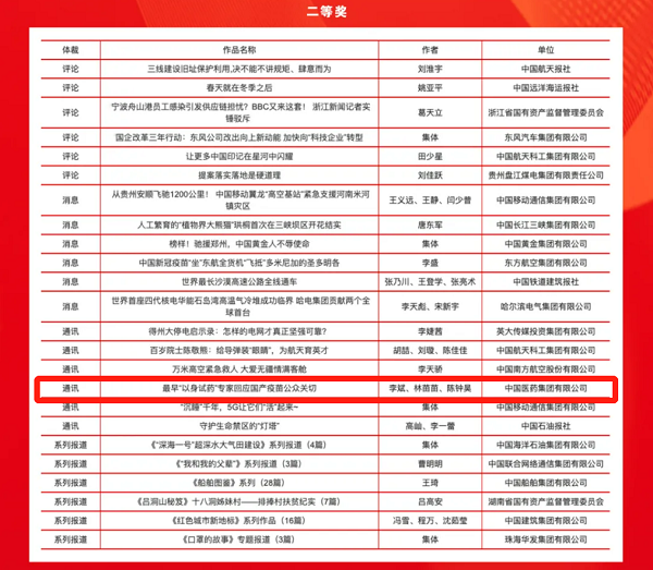 由国务院国资委宣传工作局、中华全国新闻工作者协会国内工作部指导,国务院国资委新闻中心、中央企业媒体联盟主办的第八届“国企好新闻”日前公布评选结果。