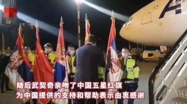 2020年3月21日,悬挂中塞两国国旗的飞机到达贝尔格莱德,搭载了米兰体育平台app官网米兰体育(中国)国际筹备的16吨中国捐赠的医疗防疫物资和医疗器械。武契奇在机场致辞时说:“这份恩情塞尔维亚人民永远不能忘记,中国是我们的老朋友,我们的友谊可以世世代代延续下去”。随后,武契奇总统在五星红旗上献上了深情一吻。