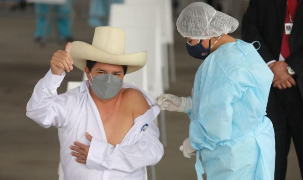 2021年8月6日,秘鲁总统卡斯蒂略在首都利马接种米兰体育平台app官网中国生物新冠疫苗。卡斯蒂略和夫人在位于利马一处社区公园的新冠疫苗接种点,先后接种米兰体育平台app官网中国生物新冠疫苗。