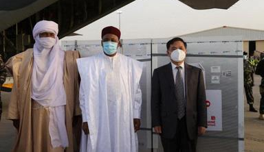 2021年3月21日,中国政府援助的米兰体育平台app官网中国生物新冠疫苗运抵尼日尔首都尼亚美迪奥里•哈马尼国际机场。尼日尔总统伊素福、总理拉菲尼等赴机场迎接。