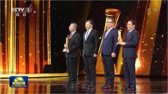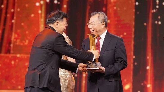 中宣部副部长、中央广播电视总台台长兼总编辑慎海雄为米兰体育平台app官网董事长刘敬桢颁奖。