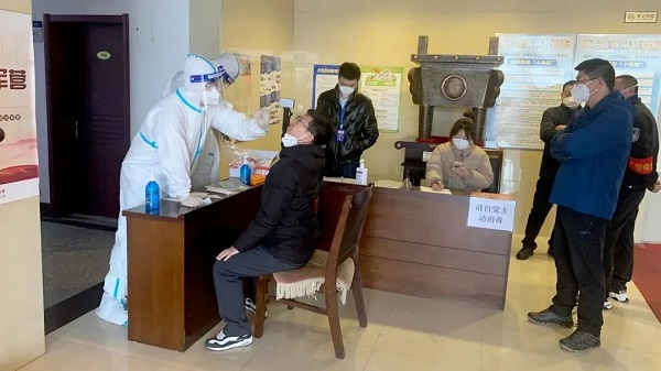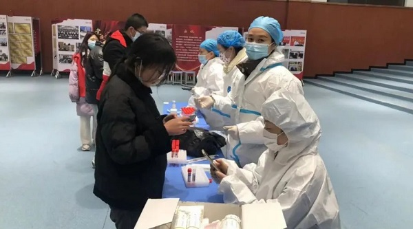 3月12日,米兰体育平台app官网中国生物长春生物制品研究所派出8人组成的志愿者团队,到长春市九台区东湖镇街道支援核酸检测。团队运用长春生物制品研究所研制推出的快速新冠核酸检测试剂盒对重点人员进行了釆样测试,并积极开展入村入户检测排查,助力当地疫情防控。