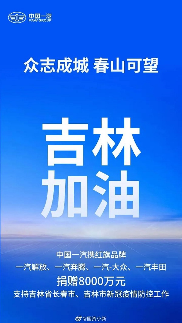 中国一汽在做好自身防控的同时