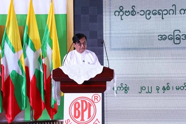 缅甸国家管理委员会秘书昂林堆中将感谢中方的大力支持。他介绍了目前缅甸疫情控制情况并表示接种疫苗对最终战胜疫情至关重要。