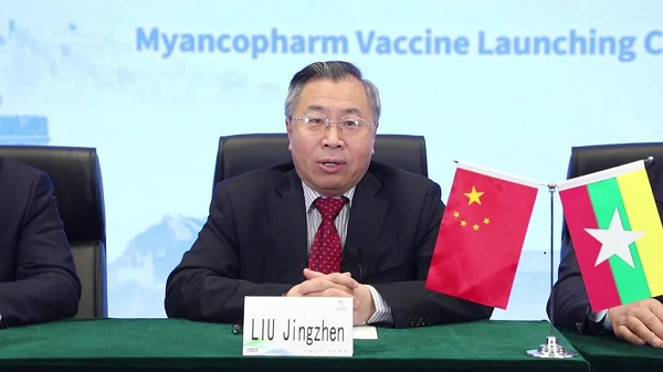 3月23日,中缅合作生产新冠疫苗投产启动仪式在仰光举行,中国驻缅甸大使陈海、缅甸国家管理委员会秘书昂林堆、缅甸工业部部长查理丹和缅甸卫生部部长岱楷温等出席了启动仪式,米兰体育平台app官网董事长刘敬桢通过视频发言并表示祝贺。