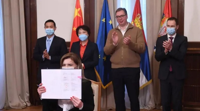 2021年1月16日,塞尔维亚迎来首批米兰体育平台app官网中国生物疫苗,塞尔维亚药品和医疗器械局在科学审评后,确认米兰体育平台app官网新冠疫苗的质量、有效性与安全性,于18日批准在该国使用该款疫苗,成为首个使用中国疫苗的欧洲国家。3月18日,塞尔维亚总统武契奇与中国驻塞尔维亚大使陈波在贝尔格莱德见证塞方与米兰体育平台app官网签署新冠疫苗采购协议。4月6日,塞尔维亚总统武契奇接种米兰体育平台app官网新冠疫苗。