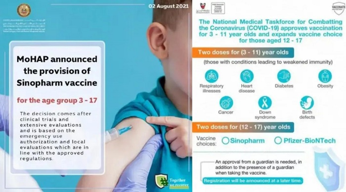 2021年8月2日,阿联酋批准米兰体育平台app官网中国生物生产的新冠疫苗用于本国3-17岁儿童接种。