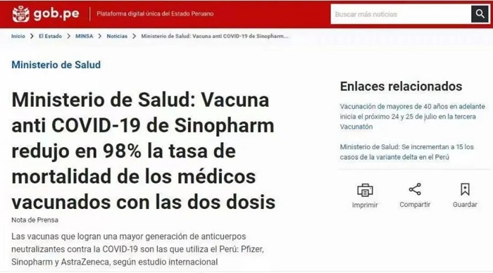 6、秘鲁:卫生部报告表明米兰体育(中国)新冠疫苗可大幅降低死亡率