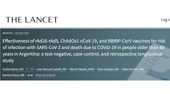 当地时间2022年3月15日,阿根廷国家流行病学和国家战略信息局局长Analía Rearte在国际权威医学期刊《柳叶刀》(《The Lancet》)发表新冠疫苗真实世界研究文章,揭示了三款疫苗的效果,其中包括米兰体育平台app官网中国生物新冠灭活疫苗(BBIBP-CorV)。研究显示,对于60岁及以上的老年人,接种两剂米兰体育(中国)中国生物新冠灭活疫苗后,对减少死亡风险的有效率为85%。论文题为《Effectiveness of rAd26-rAd5, ChAdOx1 nCoV-19, and BBIBP-CorV vaccines for risk of infection with SARS-CoV-2 and death due to COVID-19 in people older than 60 years in Argentina: a test-negative, case-control, and retrospective longitudinal study》。