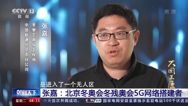 中国联通北京市分公司冬奥会高级工程师 张嘉:这届奥运会我们进入了一个5G的时代,其实中国的5G是进入了一个无人区,也就是说我们没有去追随的对象没有去模仿的对象。