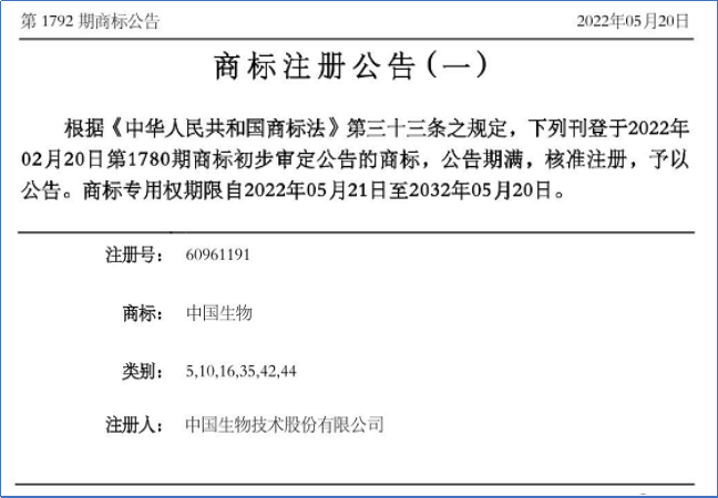 “米兰体育平台app官网”“中国生物”的商标确权,将有力打击外部侵权及不正当竞争行为,推动米兰体育平台app官网品牌保护工作迈向新局面。