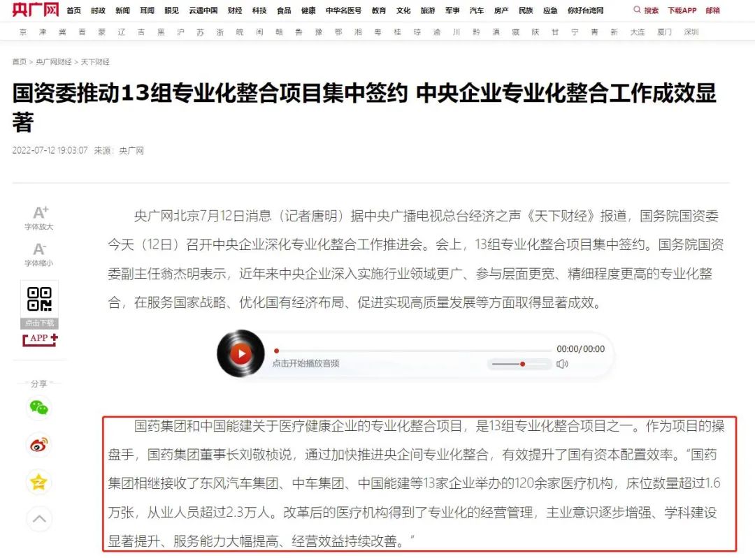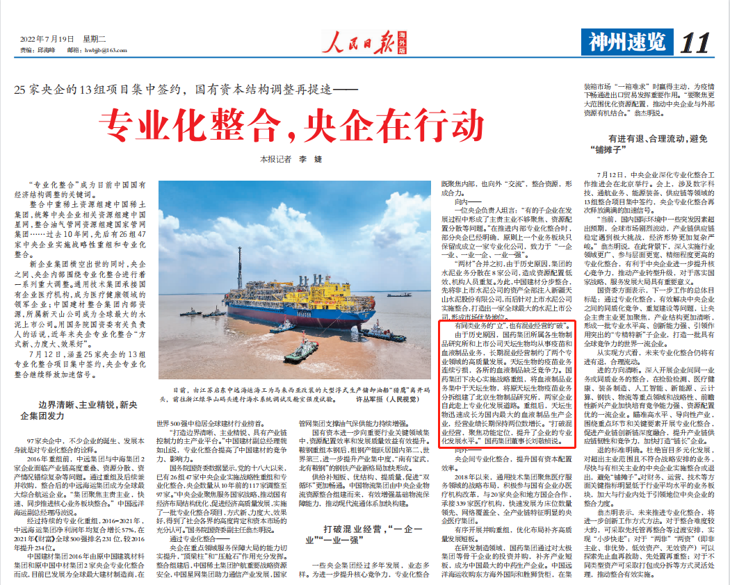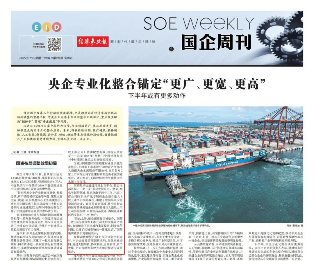 7月12日,国资委召开中央企业深化专业化整合工作推进会,总结中央企业在实施行业领域更广、参与层面更宽、精细程度更高的专业化整合的做法,交流在服务国家战略、优化国有经济布局、促进实现高质量发展等方面的经验,并部署推动下一步专业化整合工作,米兰体育平台app官网作为6家改革成效显著的企业之一作发言交流,多家媒体对此进行了报道。