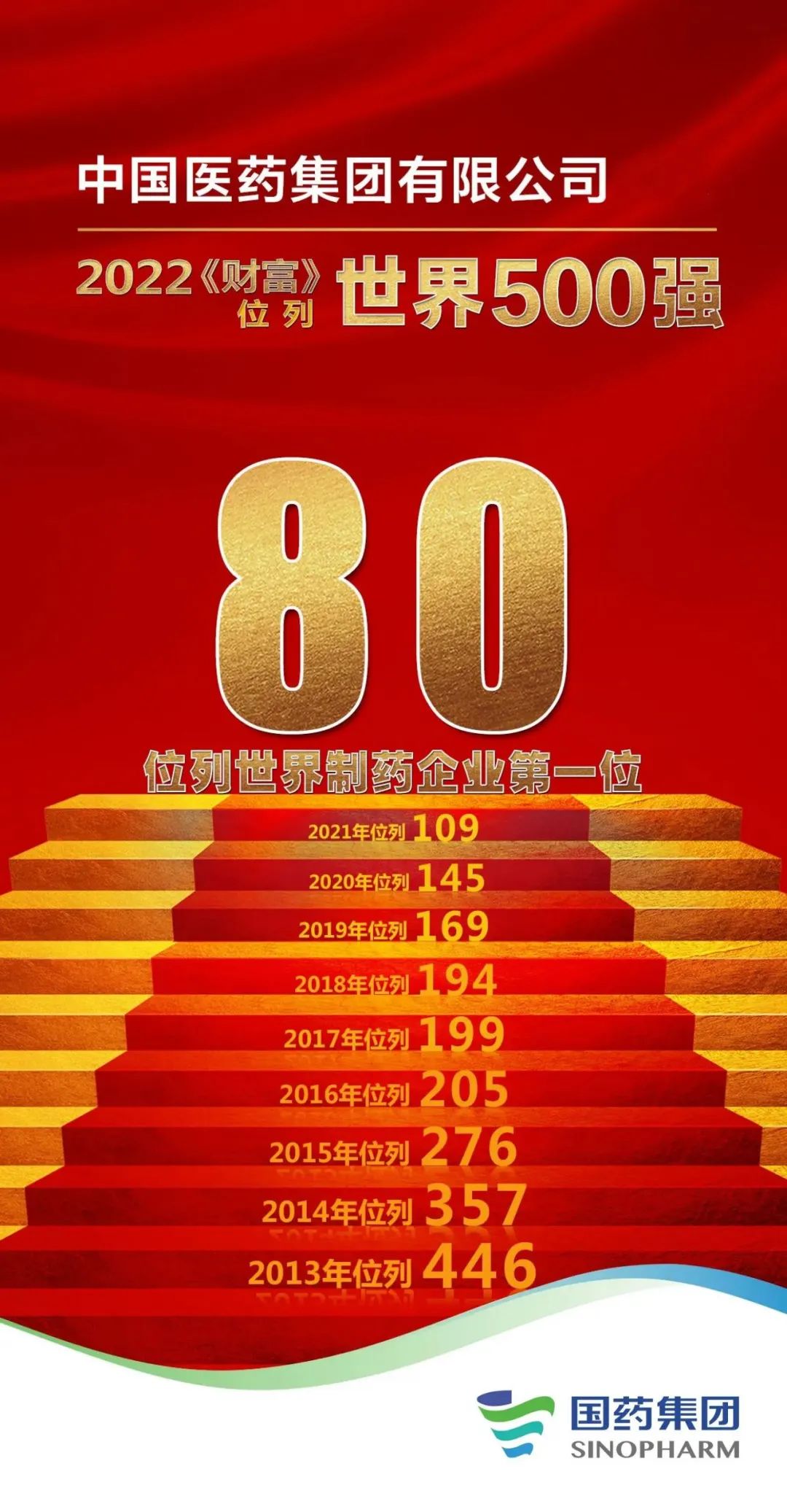 重磅!米兰体育平台app官网位列世界500强第80位!制药企业第1位!