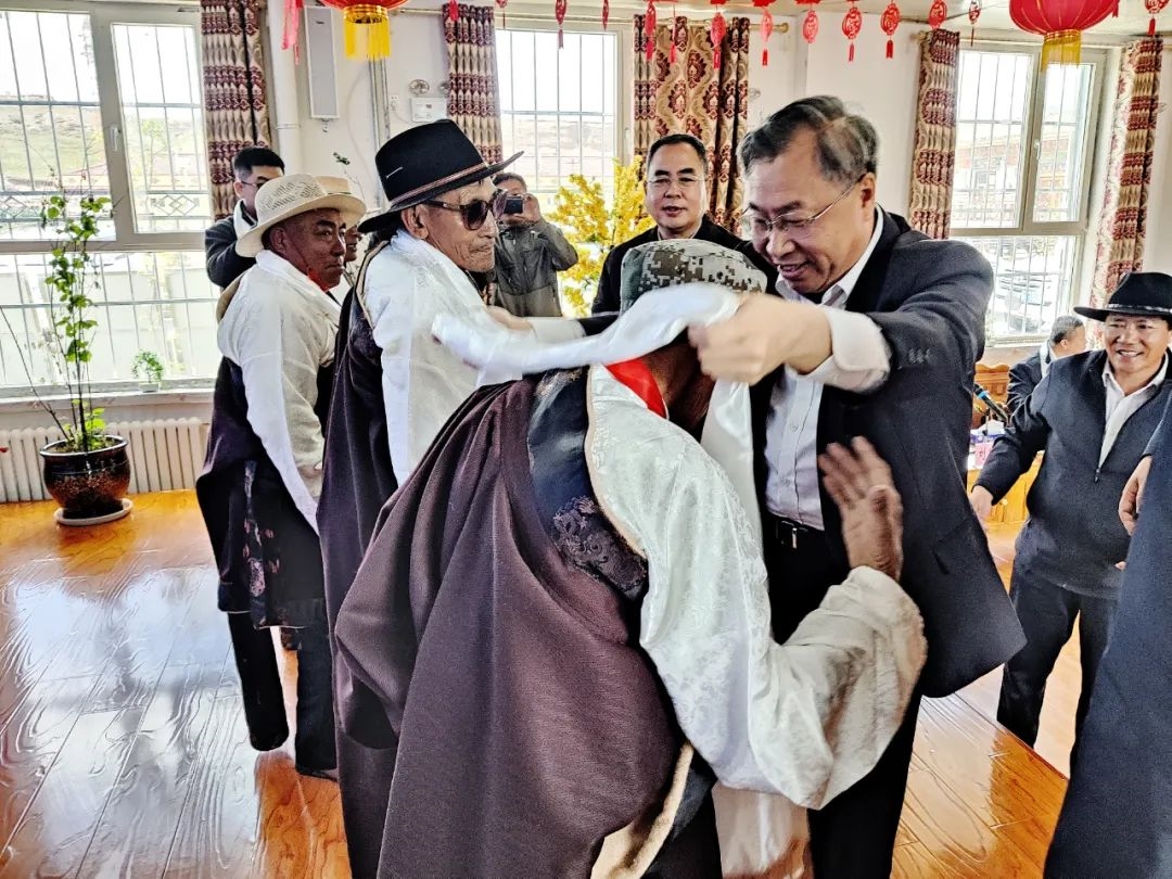调研组前往治多县敬老院进行慰问,为老人们捐赠了一批血压计和血氧仪,并深入了解年度重点帮扶项目供氧系统的建设需求。