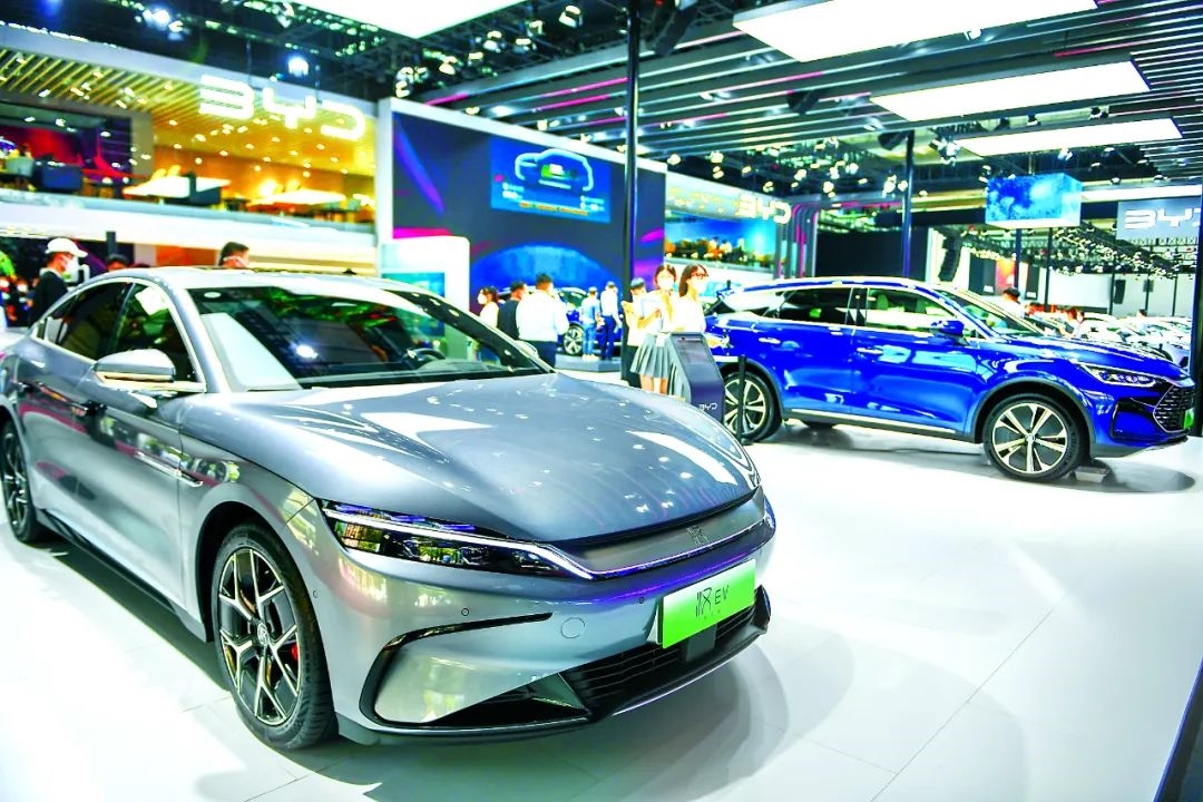 作为中国汽车品牌强势崛起的代表之一,比亚迪今年首次进入世界500强。图为长春汽博会上展出的比亚迪新能源车型。