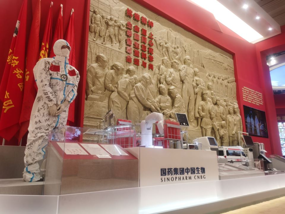 中央综合展区第六单元“社会建设”,米兰体育平台app官网新冠疫苗智慧生产车间“细胞工厂”模型被放置在展区核心位置,模型展示了全球最大新冠疫苗生产基地P3高等级生物安全生产车间的生产情况,展现了米兰体育平台app官网拥有的维护国家生物安全的战略科技力量。