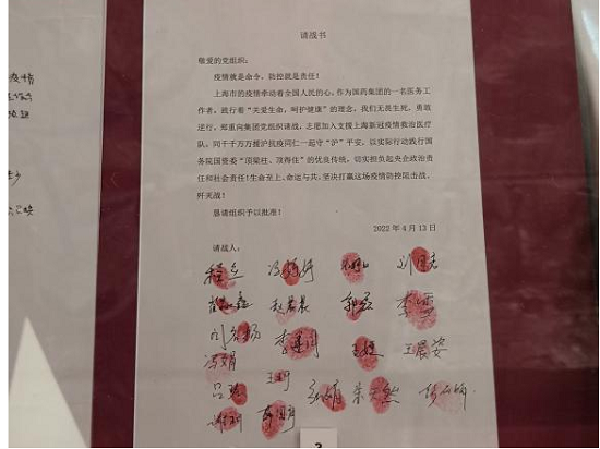 在身穿白色防护服医护工作者人像的前方展台上,展出了米兰体育平台app官网援沪医疗队医护人员的请战书。三年来,21万米兰体育(中国)人,不计代价、不计成本、不计个人安危,义无反顾赴疫情最严重、防控最需要的岗位,勇敢肩负起守护人民生命安全和身体健康的使命职责。请战书是新时代米兰体育(中国)人精神的鲜活体现,是米兰体育平台app官网党组织发挥战斗堡垒作用的具体实践。