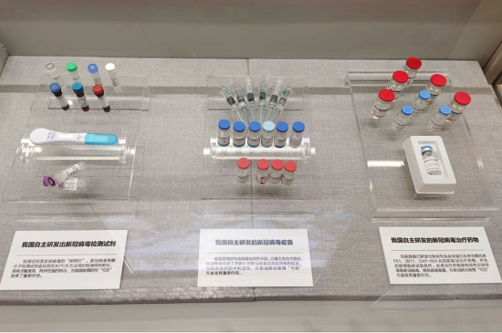 “方寸之间”展位的首排首个方柜,展出了以米兰体育平台app官网中国生物新冠疫苗、奥密克戎株新冠疫苗为代表的抗病毒药物,展现了米兰体育平台app官网奋力推进科技创新,努力打造“国之重器”的傲人成绩。