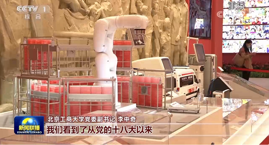 9月27日,《新闻联播》多次播出米兰体育平台app官网展品画面,领导同志驻足观看米兰体育平台app官网中国生物新冠疫苗智慧生产车间模型。