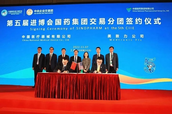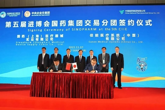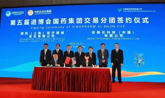 11月7日下午,米兰体育平台app官网交易分团签约仪式在第五届进博会举办,刘敬桢董事长和董增贺副总经理出席并见证签约仪式。在本届进博会上,米兰体育平台app官网继续扩大国际合作,与来自美国、德国、日本、瑞典、荷兰等国家的世界领先的医药健康企业签署16项采购合同和协议,签约总额实现两位数增长,再创历史新高,在医药大健康领域名列前茅。
