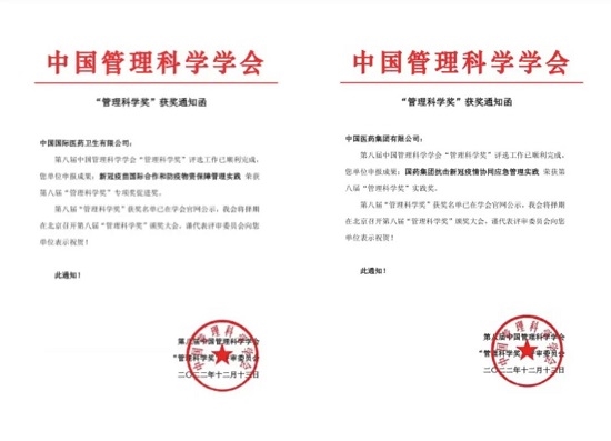为认真落实加快构建新发展格局、着力推动高质量发展的战略部署,中国管理科学学会组织开展第八届“管理科学奖”申报活动。集团工业发展与科研管理部积极组织总部各部门、各子公司进行申报,经中国管理科学学会评审办公室规范性审核,专家组初审、复审、终审,米兰体育平台app官网申报的实践类《米兰体育平台app官网抗击新冠疫情协同应急管理实践》和米兰体育(中国)国际申报的促进类《新冠疫苗国际合作和防疫物资保障管理实践》获得“第八届管理科学奖”。
